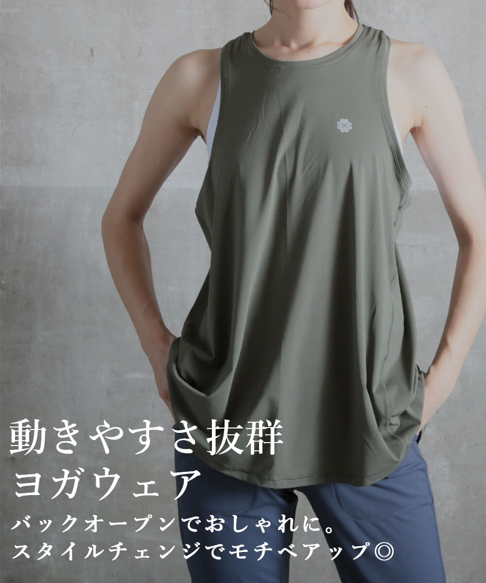 スタッフによるおススメポイント 「ヨガに最適スタイル2ウェイ ヨガベスト」サラっとした軽い肌ざわりとフィットネスに嬉しい速乾性。
