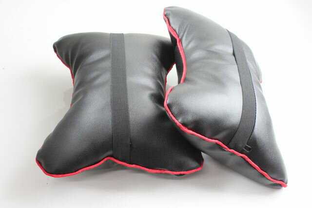 )レッドパイピング付きネックパッド 枕 黒 ブラック 赤 レザー調 クッション 車内 2個 首あて ネックレスト アクセサリー カー用品