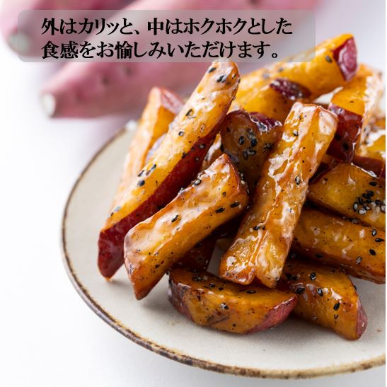 徳島県産の「鳴門金時」にたっぷりの蜜をからませた、スティックタイプの大学芋です。